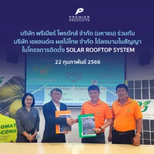 บริษัท พรีเมียร์ โพรดักส์ จำกัด (มหาชน) ร่วมกับ บริษัท เอแอนด์เจ ผลไม้ไทย จำกัด ได้ลงนามในสัญญา ในโครงการติดตั้ง Solar Rooftop Systemสิงหาคม 1, 2024อ่านต่อ