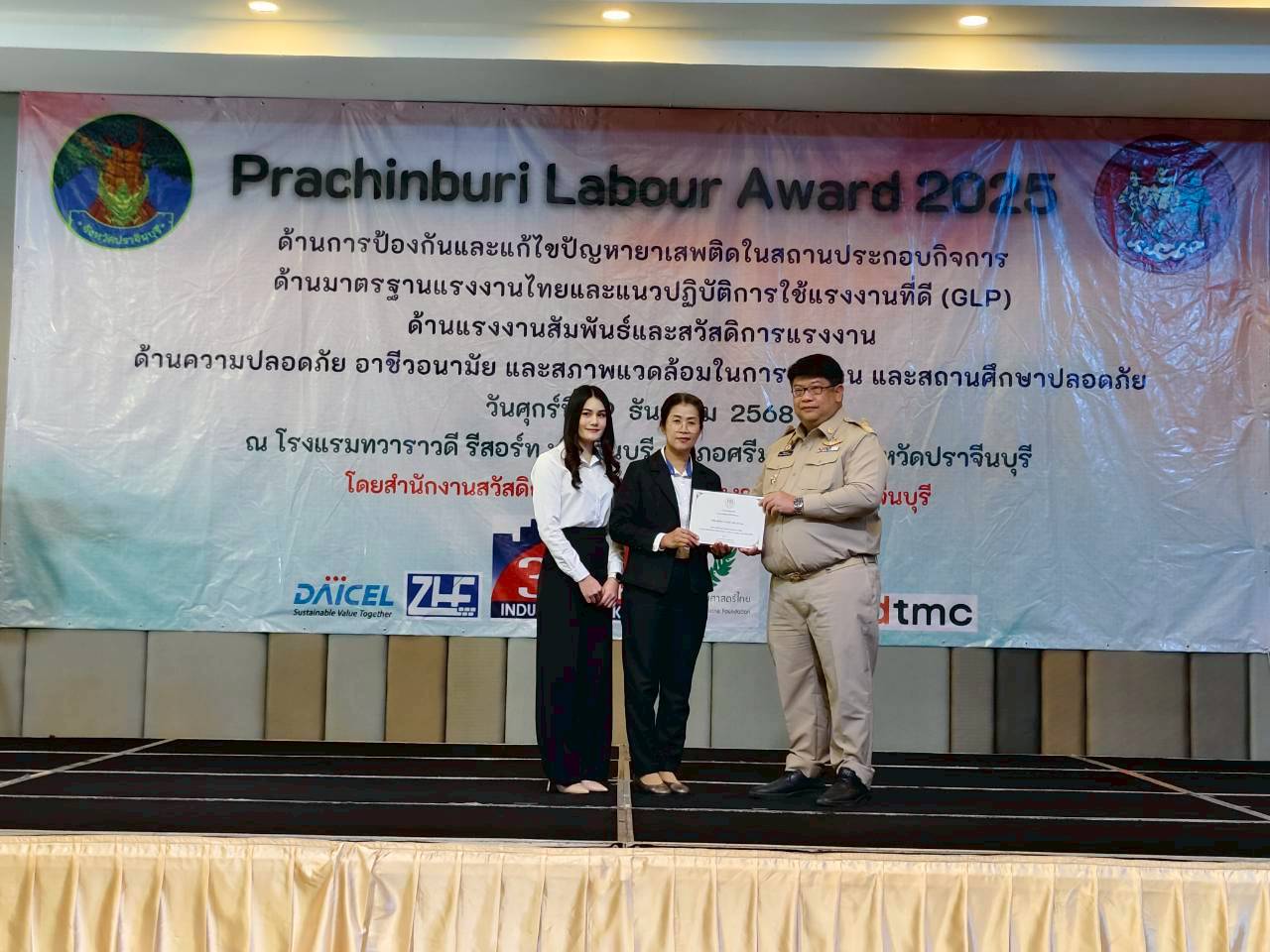 •รางวัลมาตรฐานป้องกันและแก้ไขปัญหายาเสพติดในสถานประกอบกิจการ รางวัลที่แสดงถึงความรับผิดชอบต่อสังคมและพนักงาน ผ่านนโยบายเชิงรุกและการจัดตั้งคณะทำงานเพื่อเฝ้าระวัง สอดส่อง และสุ่มตรวจสารเสพติด เพื่อสร้างสภาพแวดล้อมการทำงานที่สีขาวและปลอดภัย