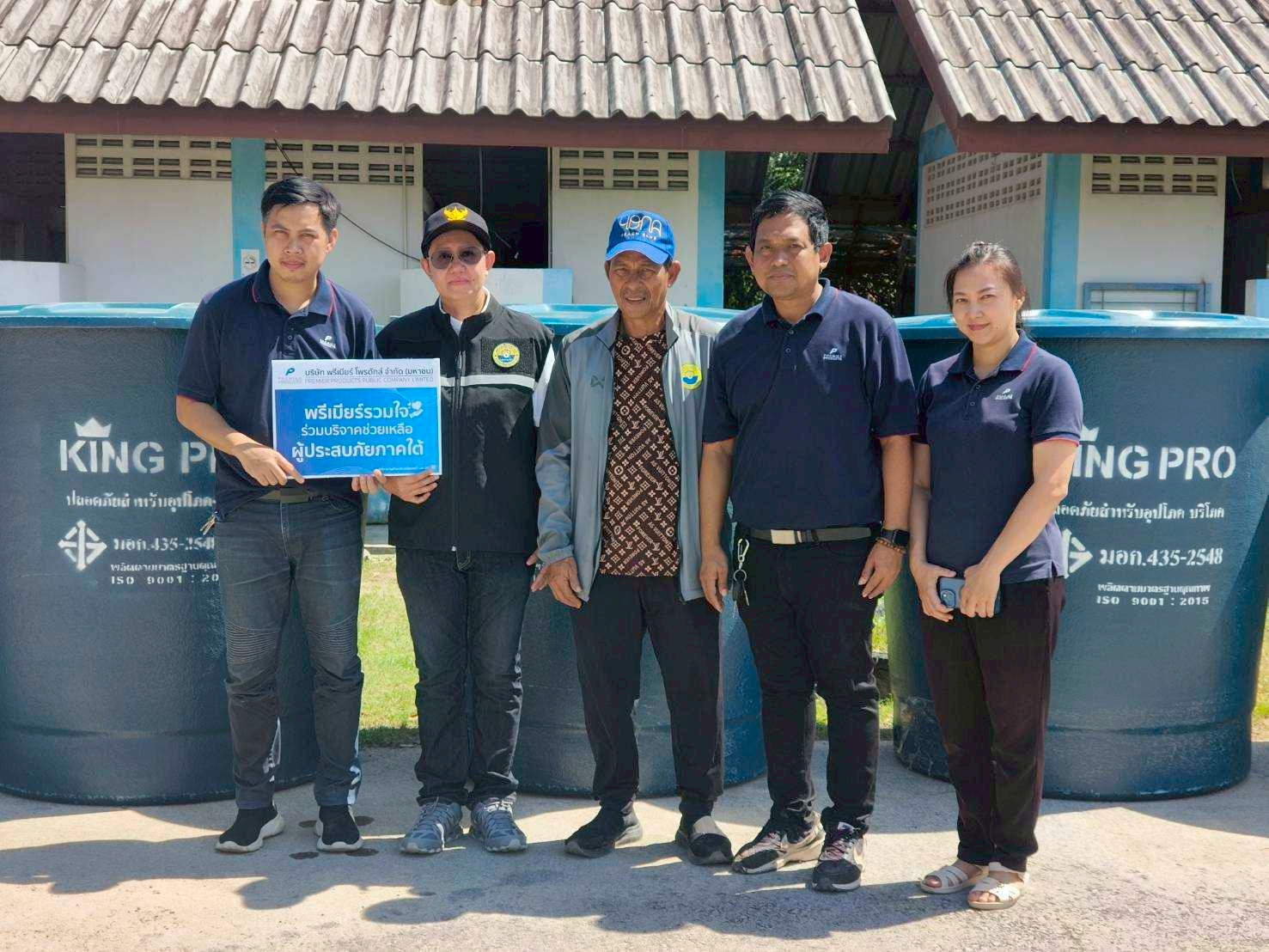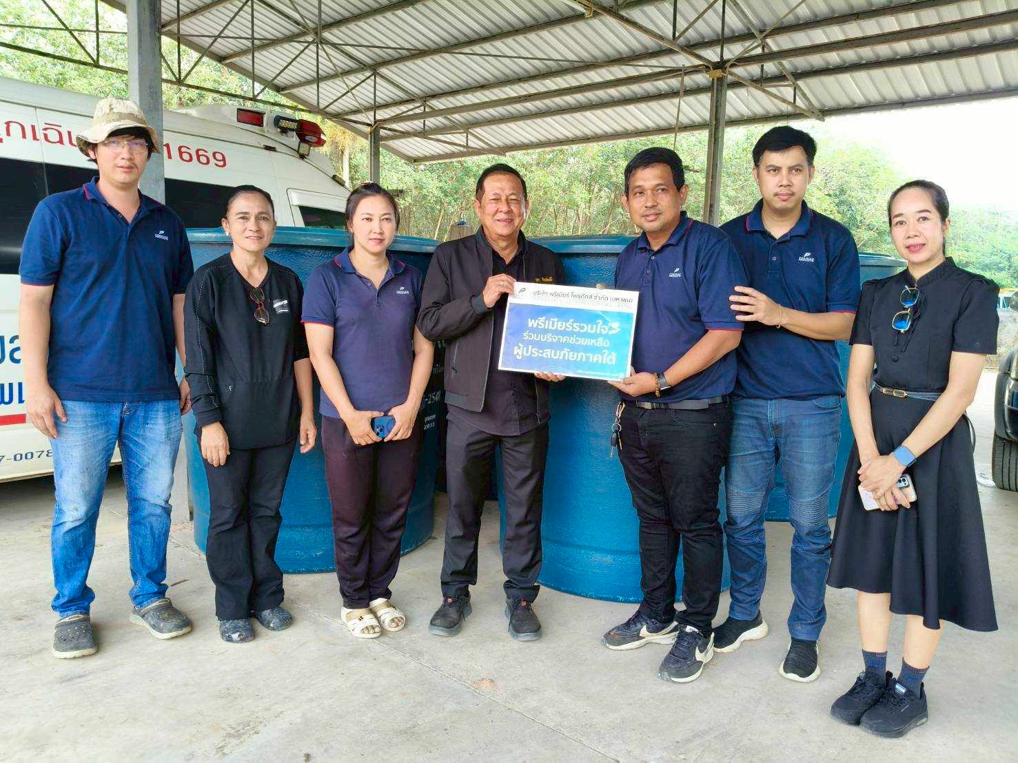 บริษัท พรีเมียร์ โพรดักส์ จำกัด (มหาชน) ได้ดำเนินการส่งมอบถังสำรองน้ำไฟเบอร์กลาสขนาด 1,500 ลิตร จำนวนรวม 20 ใบ ให้แก่เทศบาลในพื้นที่อำเภอหาดใหญ่ จังหวัดสงขลา เมื่อวันที่ 3 ธันวาคม 2568 เพื่อบรรเทาความเดือดร้อนเร่งด่วนจากปัญหาขาดแคลนน้ำใช้ของประชาชนหลังสถานการณ์อุทกภัย