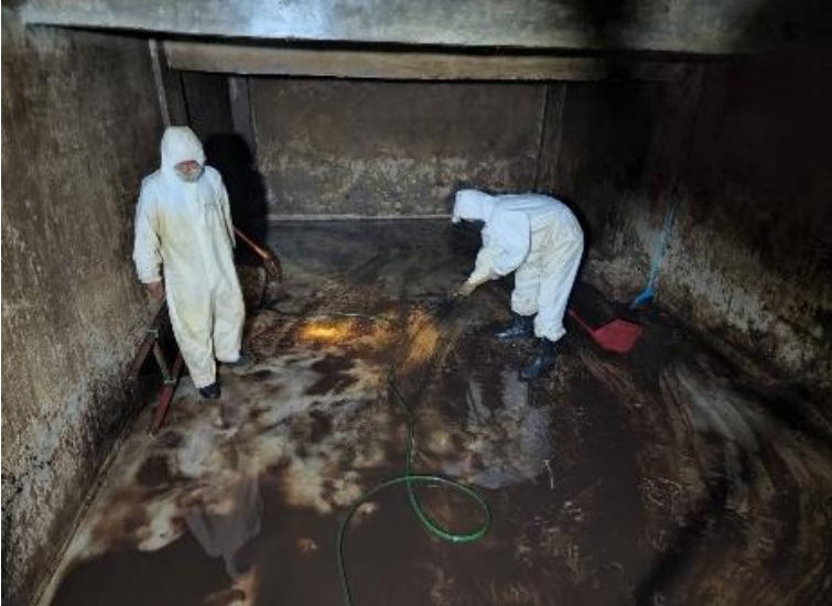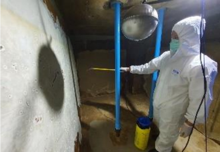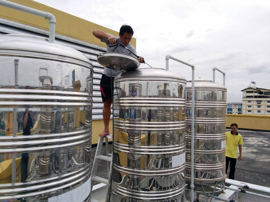 - ใช้ปืนแรงดันสูงฉีดล้างภายในถังสำรองน้ำ