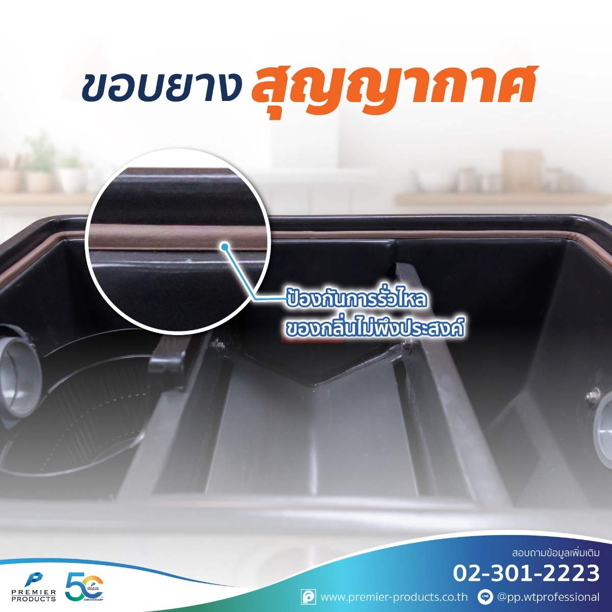 - ฝาปิดซีลขอบยางป้องกันกลิ่นไม่พึงประสงค์