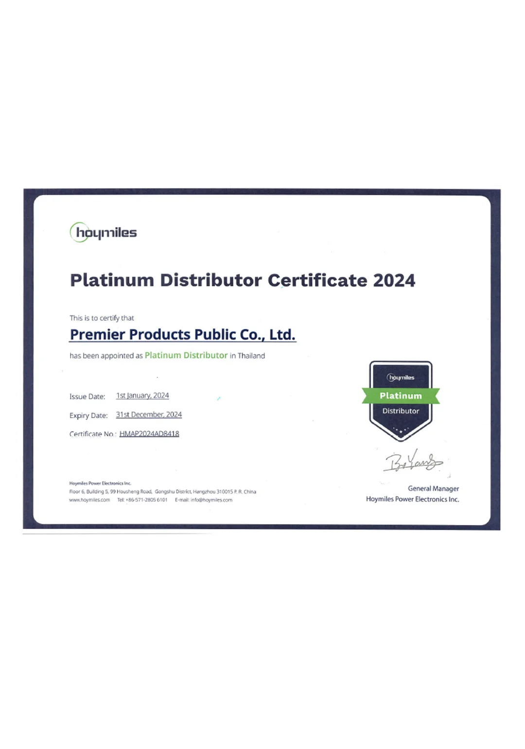 Premier Products ได้เข้ามามีบทบาทในตลาดพลังงานทดแทนไทยในฐานะผู้ให้บริการระบบพลังงานแสงอาทิตย์บนหลังคา หรือ โซลล่าร์เซลล์แบบครบวงจร ทั้งสำหรับที่อยู่อาศัย อาคารพาณิชย์ และโรงงานอุตสาหกรรม โดยนำเสนอผลิตภัณฑ์หลากหลาย อาทิ แผงโซลาร์ อินเวอร์เตอร์ อุปกรณ์ติดตั้งโซล่า และเครื่องควบคุมต่าง ๆ ซึ่งช่วยให้ผู้ใช้สามารถผลิต ใช้ และจัดการพลังงานได้อย่างมีประสิทธิภาพ